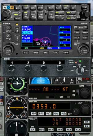 Other avionics that come with the Cessna Caravan are the Garmin 530 GPS system, which is a stand alone, pop up panel, the Garmin GMA Audio Panel, the Garmin GNS 430 navigation system, and the Garmin GTX 320 Transponder, all of which are easy to use and are explained in a short and sweet method in the Printed Manual that comes with the product. The developers wanted to make all functions as close as possible to the real thing, and have done a superb job in this task! Clicking the "Radio Stack" button will bring up the panel that displays all these avionics except for the Garmin 530 GPS unit, which is toggled in the standard way from the tool button bar or by clicking on the panel. The 530 has the added function of displaying the comm and nav aid info also, something the default Caravan does not have.
