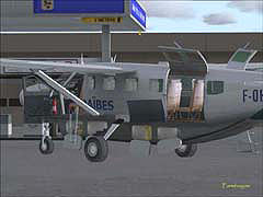 soft "virtual seat", request a cocktail, and enjoy the ride! Some of these trips can be brutally long! The interior on the left reminds me of what I sat in when I hopped across the Pacific in the tail end of some military plane from MATS. Can't remember the aircraft, might have been a Galaxy, but I remember the seats! I would have preferred the accommodations in the image on the right (but I was just glad to be on that plane)! You can plainly see the extra detail that went into the Just Flight Caravan. VERY nice!