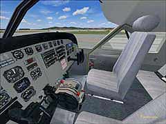 The 2D panels, as well as the VC panels are clearly rendered, easily read, and mostly workable. The 2D view offers you 2 different views of the panel. There is a bit of eye candy on the panels and side panels, but not excessive. For the most part, everything that you would need to "fly" this aircraft can be clicked, switched, or turned. Some of the functions in the VC mode will not operate unless you're in the default VC position. Just hit your space bar and you'll pop back to that position. This aircraft comes equipped with something that's not found in smaller planes, and that's a radar altimeter. This gives you the altitude above the ground (AGL - Above Ground Level) of your aircraft, not the MSL (Mean Sea Level). A very handy piece of avionics for flying in poor visibility conditions.